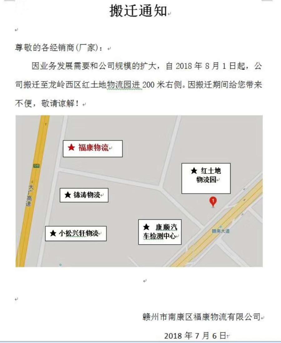 福康物流搬迁通知